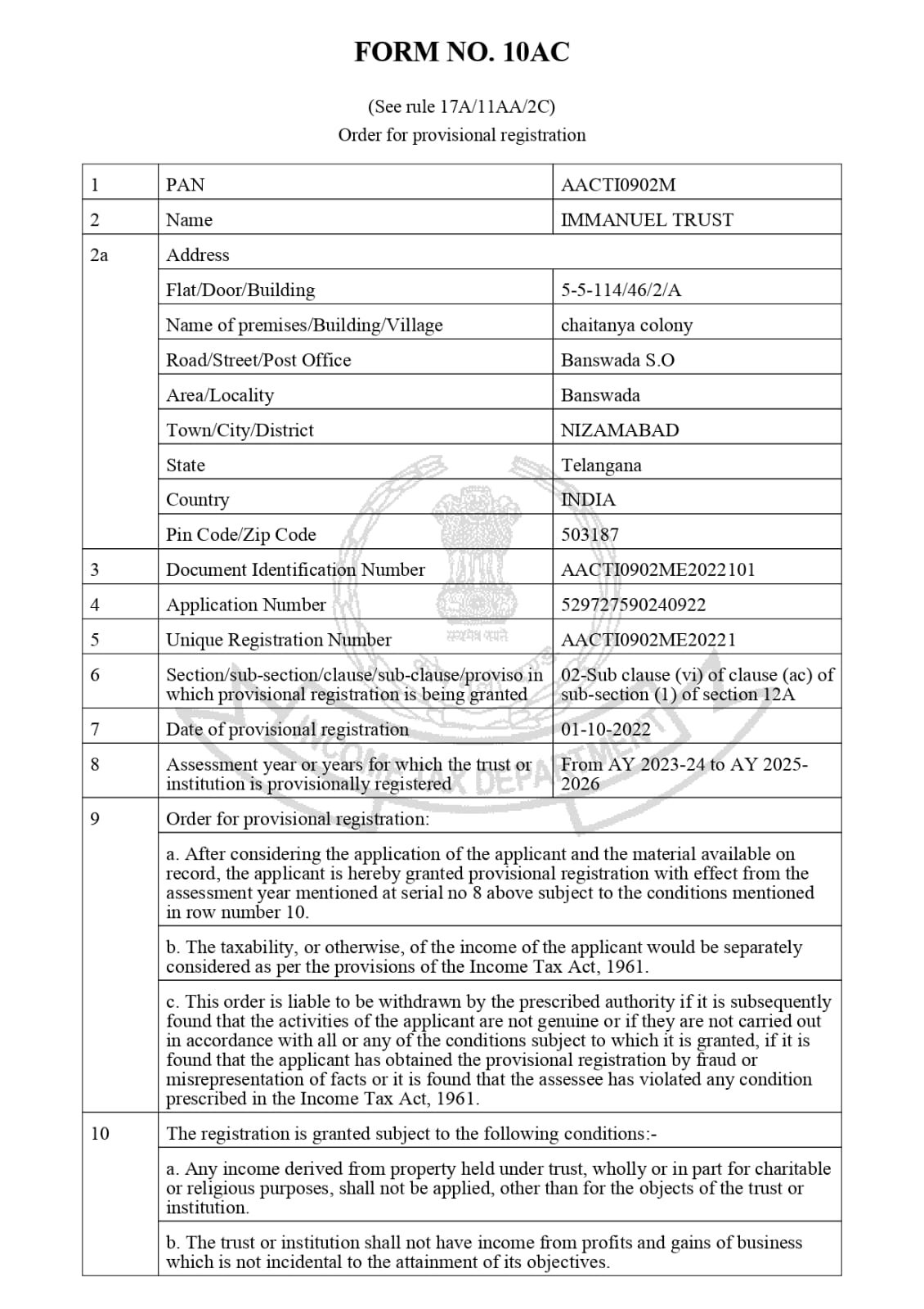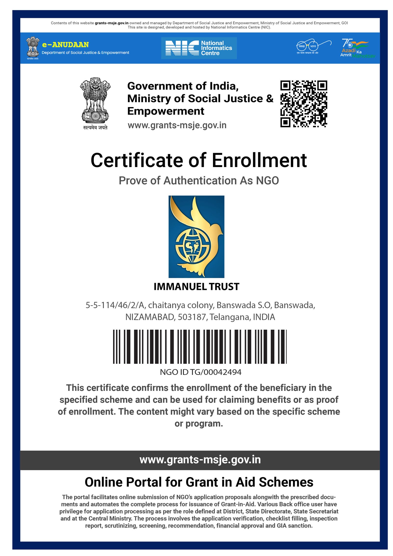 Our organization is led by a visionary leader, Sri. NALLAWAR GNANENDER, whose unwavering commitment to our cause has been the driving force behind our success. Established in 2015, since then the organization has been expanding continuously in terms of social and Educational Development and Medical services, Food, and Sheltering for Orphans. It has worked for the promotion of sustainable, equitable, and participatory development, social welfare, and social justice through Programs for social work, the Establishment of Educational Technical and Medical Institutes supportive relief and education to the people, Health services, and other human service through social research and dissemination of socially relevant knowledge, social intervention through training and field action, contribution to social and welfare policy and program at State, National and International levels, over the years, The organization has among others (NGOs, Trusts) thrusts made A significant contribution to planning, action strategies, and Human Resource Development in several areas, ranging from sustainable rural and urban development to education, health, Agriculture, and Human Rights, in all case, the focus has been on the disadvantaged and marginalized section of societies, such as women, children and tribal. At IMMANUEL TRUST , we envision a world where education is a fundamental right for all. Since our inception in 2015, we have been dedicated to breaking down barriers to education, especially for marginalized and disadvantaged communities. Through our school-building initiatives, scholarship programs, and teacher training, we are working towards creating a brighter future for children and youth, empowering them with the knowledge and skills they need to succeed.